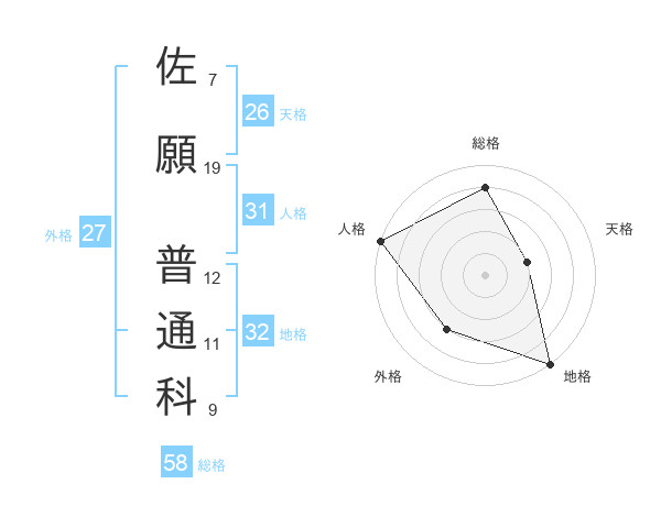 佐願 普通科さんを姓名の画数から五運を鑑定