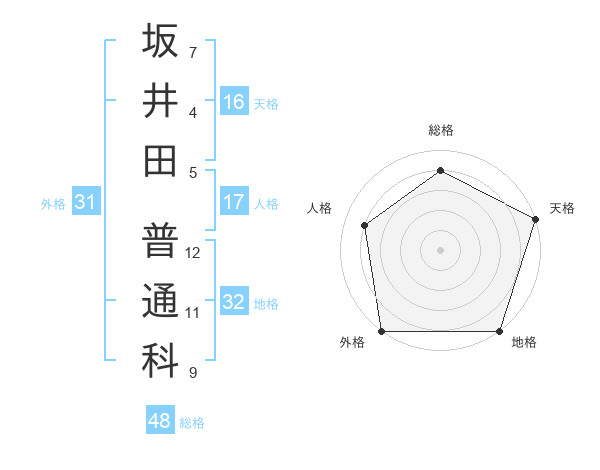 坂井田 普通科さんの天格は16画の5点!