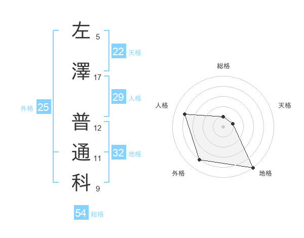 左澤 普通科さんを姓名の画数から五運を鑑定