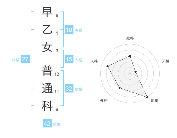 早乙女 普通科さんの総格は42画の3点!