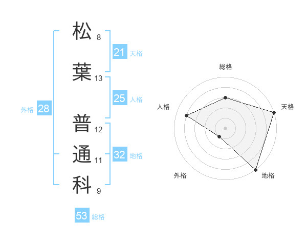 松葉 普通科さんを姓名の画数から五運を鑑定