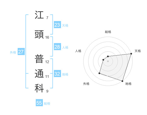 江頭 普通科さんを姓名の画数から五運を鑑定