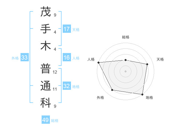 茂手木 普通科さんを姓名の画数から五運を鑑定