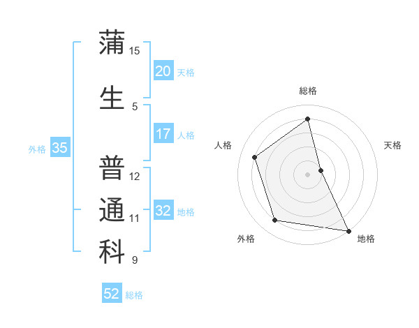 蒲生 普通科さんを姓名の画数から五運を鑑定