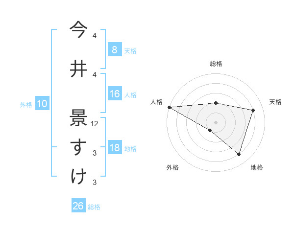占い結果は姓名判断である以上、良い場合も悪い場合もありますが、決してお名前を誹謗中傷するものでなく、画数の自動計算によって得られたものです。また、本サイトの検索によって得られた鑑定結果で、第三者を誹謗中傷したり名誉を棄損するような行為を禁じます。