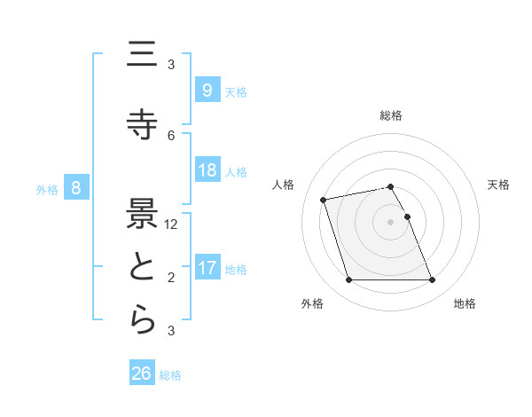 三寺 景とらさんの総格は26画の2点!