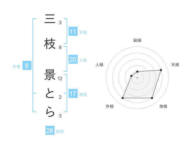 三枝 景とらさんの外格は8画の4点!