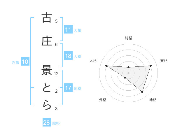 古庄 景とらさんを姓名の画数から五運を鑑定