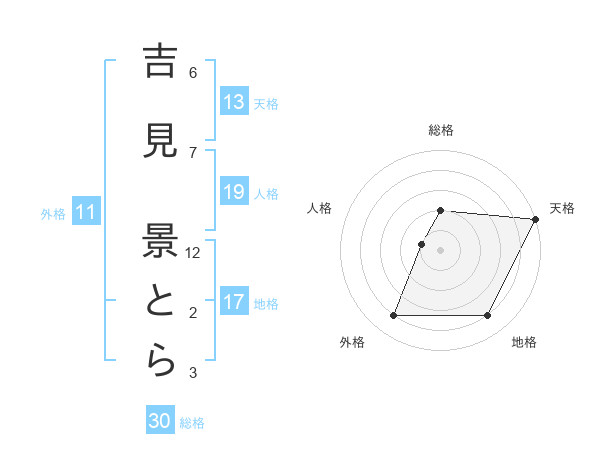 吉見 景とらさんを姓名の画数から五運を鑑定