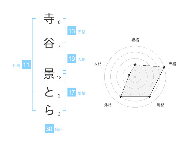 寺谷 景とらさんを姓名の画数から五運を鑑定