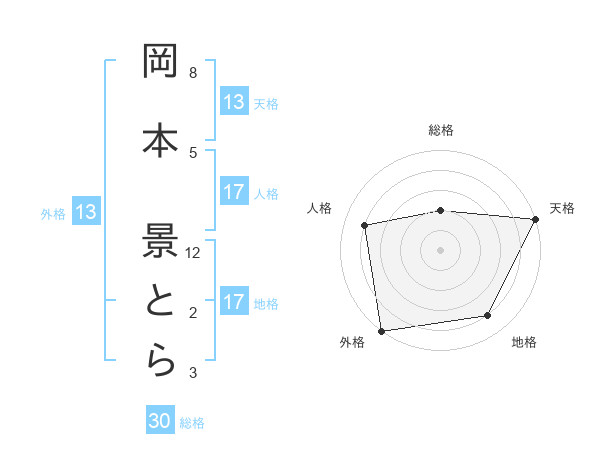 岡本 景とらさんの外格は13画の5点!