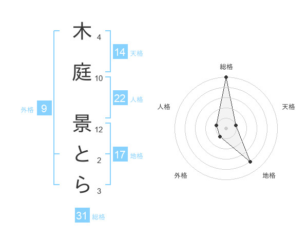 木庭 景とらさんの総格は31画の5点!