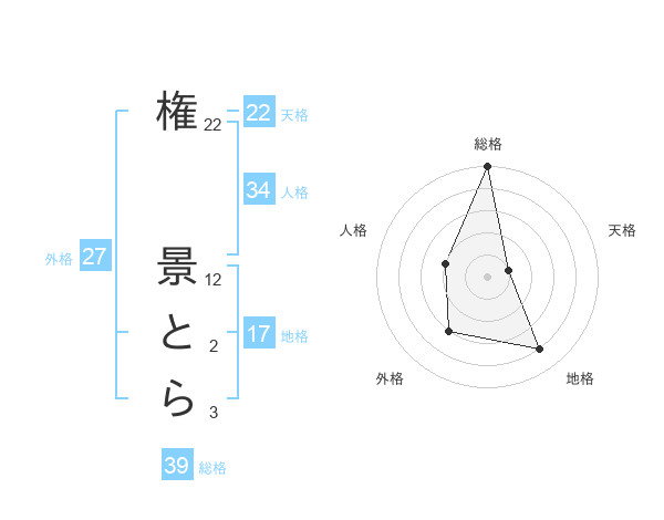権 景とらさんの総格は39画の5点!