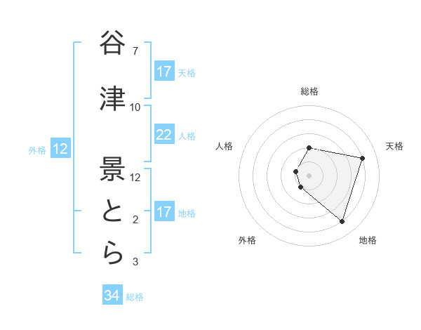 谷津 景とらさんの地格は17画の4点!