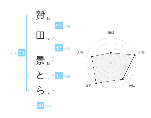 贄田 景とらさんの天格は23画の5点!