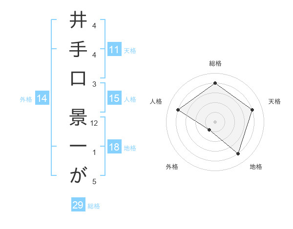 井手口 景一がさんを姓名の画数から五運を鑑定