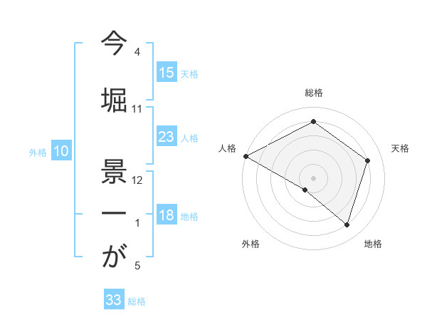 今堀 景一がさんを姓名の画数から五運を鑑定