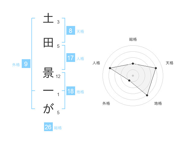 土田 景一がさんの天格は8画の4点!