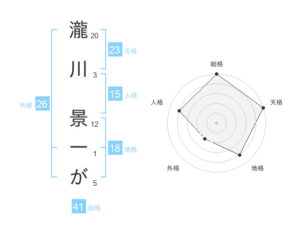 瀧川 景一がさんを姓名の画数から五運を鑑定