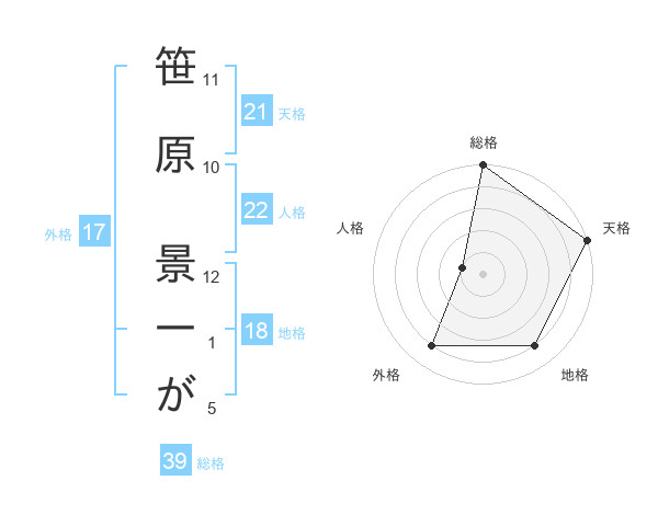 笹原 景一がさんを姓名の画数から五運を鑑定