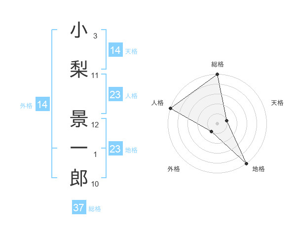 小梨 景一郎さんの総格は37画の5点!