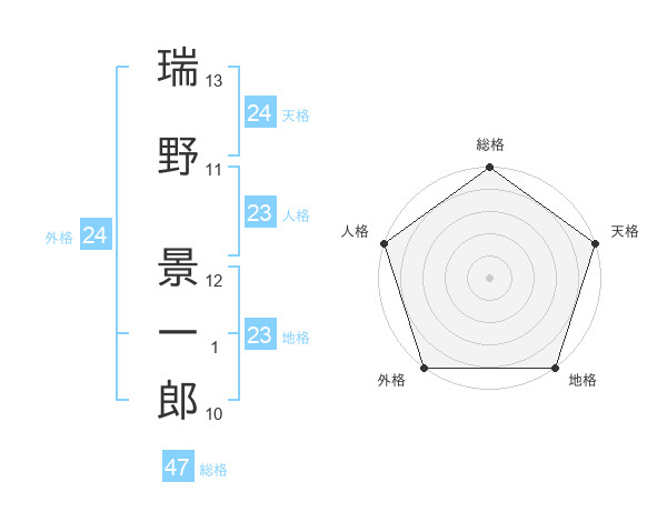 瑞野 景一郎さんを姓名の画数から五運を鑑定