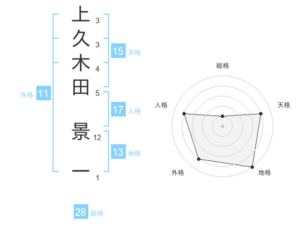 上久木田 景一さんを姓名の画数から五運を鑑定