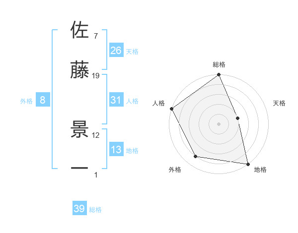 佐藤 景一さんを姓名の画数から五運を鑑定