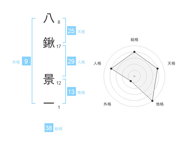 八鍬 景一さんの総格は38画の4点!