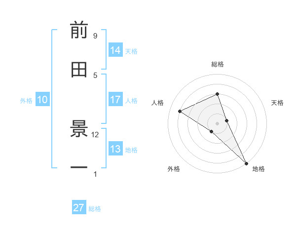 前田 景一さんの総格は27画の3点!