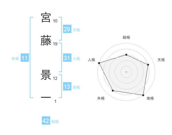 宮藤 景一さんの総格は42画の3点!