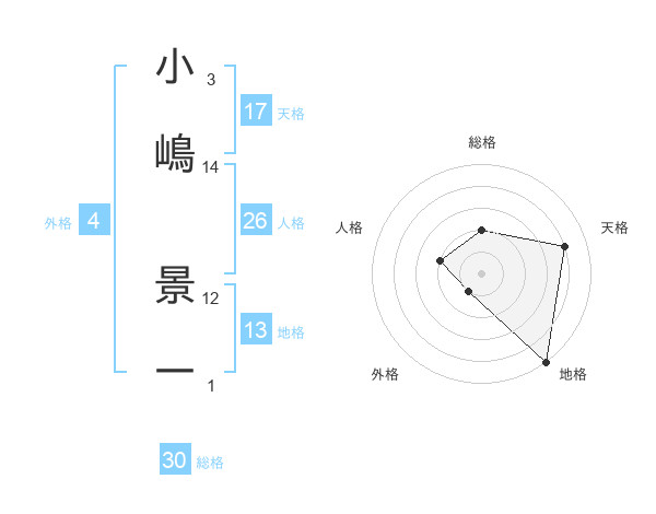 小嶋 景一さんの総格は30画の2点!