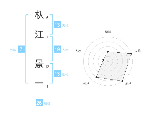 杁江 景一さんの天格は13画の5点!