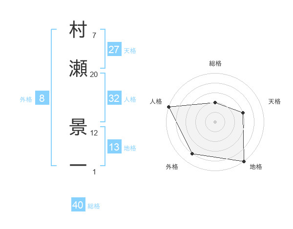 村瀬 景一さんを姓名の画数から五運を鑑定