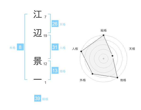 江辺 景一さんの総格は39画の5点!