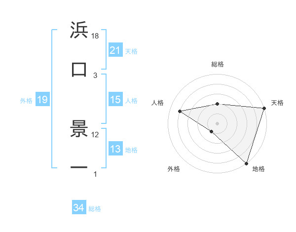 浜口 景一さんの天格は21画の5点!