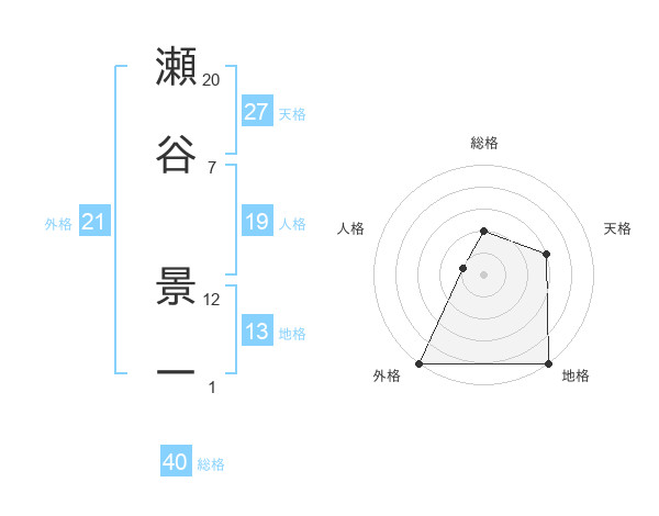 瀬谷 景一さんを姓名の画数から五運を鑑定