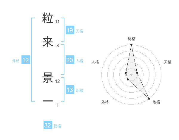 粒来 景一さんの総格は32画の5点!