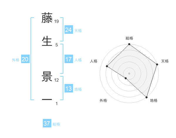 藤生 景一さんの総格は37画の5点!
