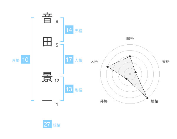 音田 景一さんの総格は27画の3点!