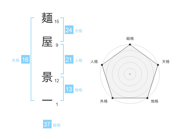 麺屋 景一さんを姓名の画数から五運を鑑定