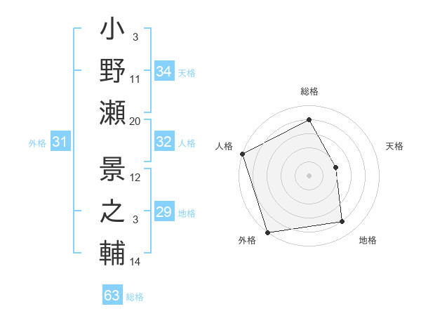 小野瀬 景之輔さんを姓名の画数から五運を鑑定