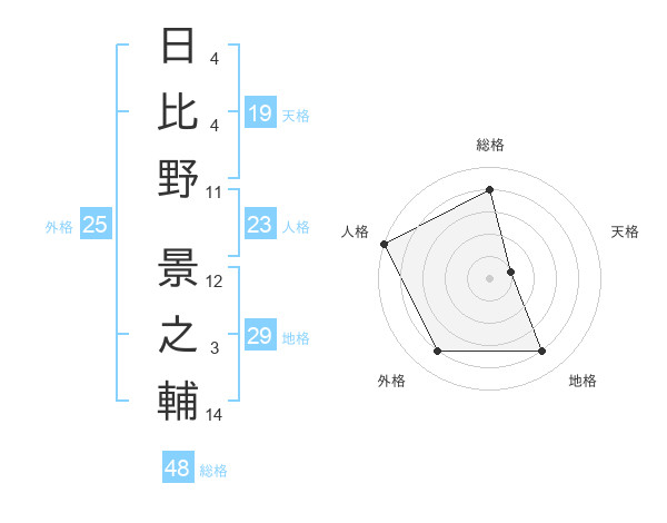 日比野 景之輔さんを姓名の画数から五運を鑑定