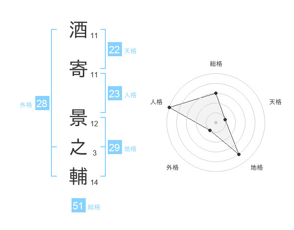 酒寄 景之輔さんの総格は51画の3点!