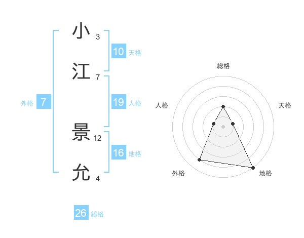 小江 景允さんの総格は26画の2点!