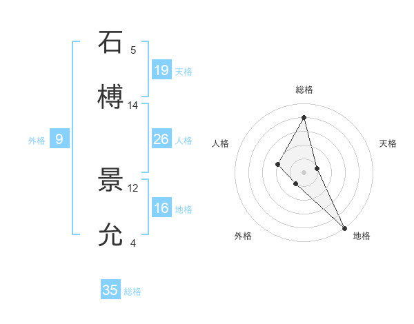 石榑 景允さんの総格は35画の4点!