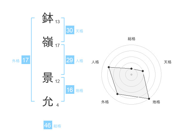 鉢嶺 景允さんの天格は30画の2点!