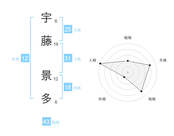 宇藤 景多さんの人格は31画の5点!
