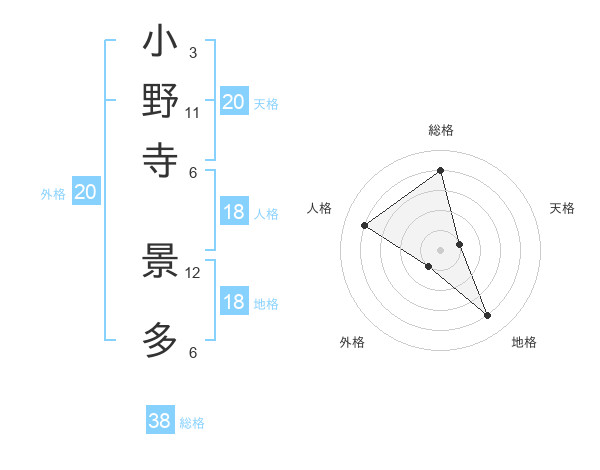 小野寺 景多さんの総格は38画の4点!