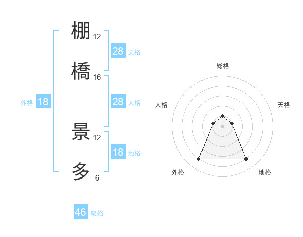棚橋 景多さんを姓名の画数から五運を鑑定